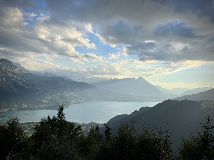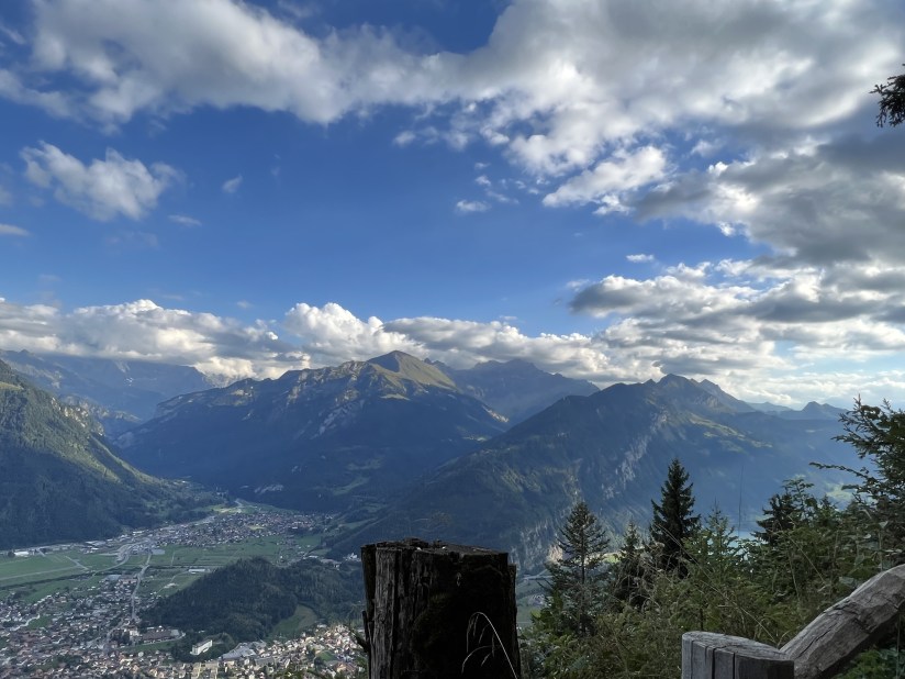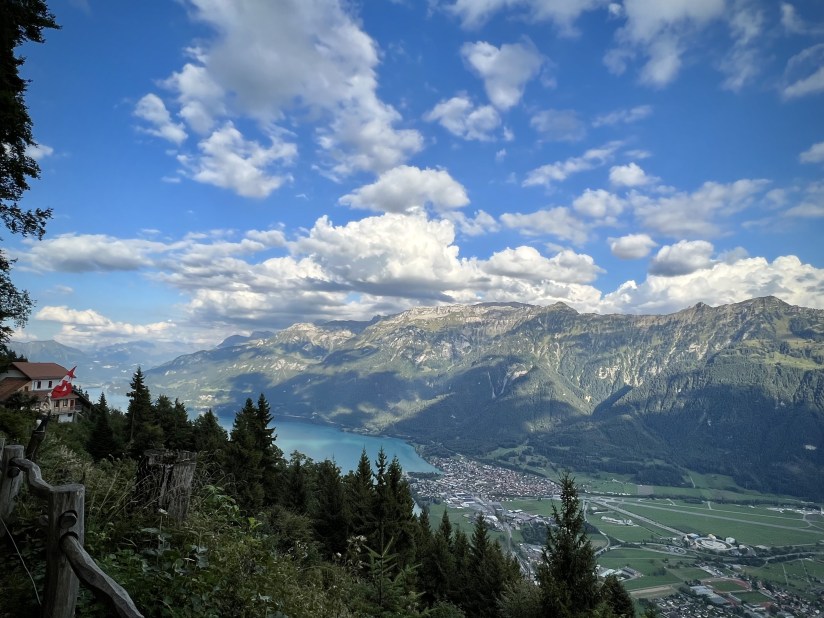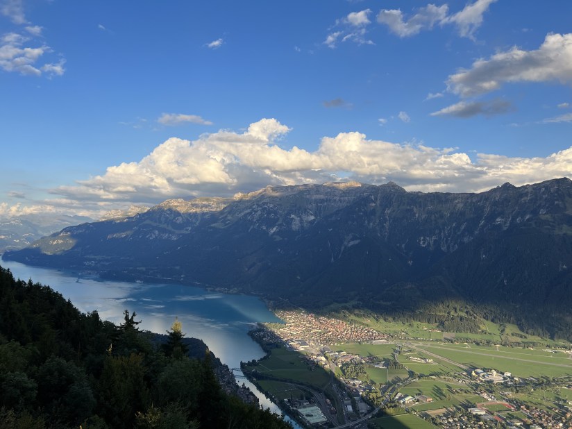 Une vue à couper le souffle. Interlaken, entre deux lacs, Thun et Brience, l’un bleu et l’autre turquoise. Un décor de carte postale qui donne parfois le syndrome de Stendhal…