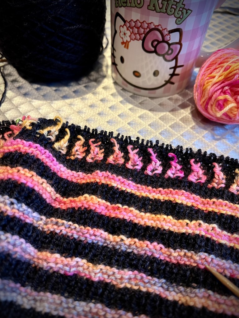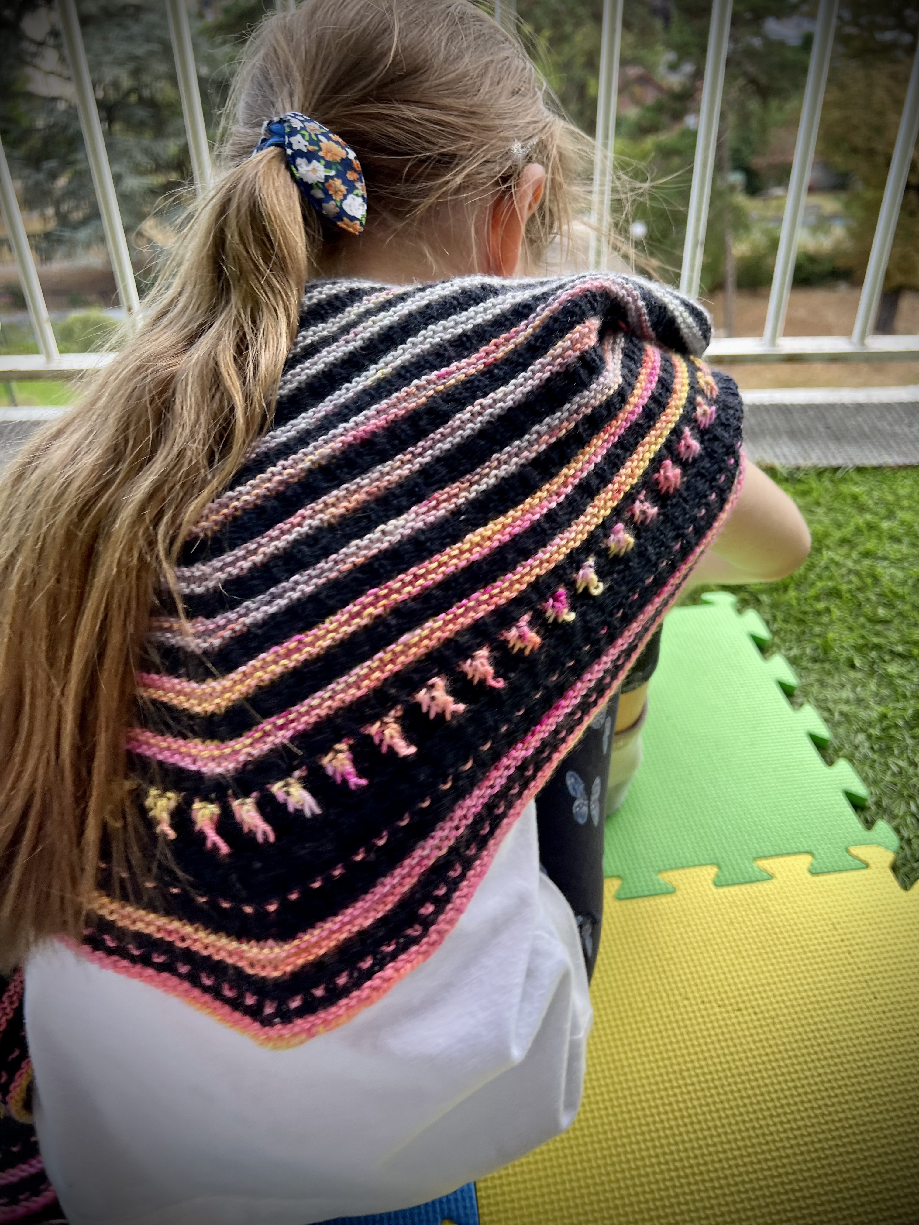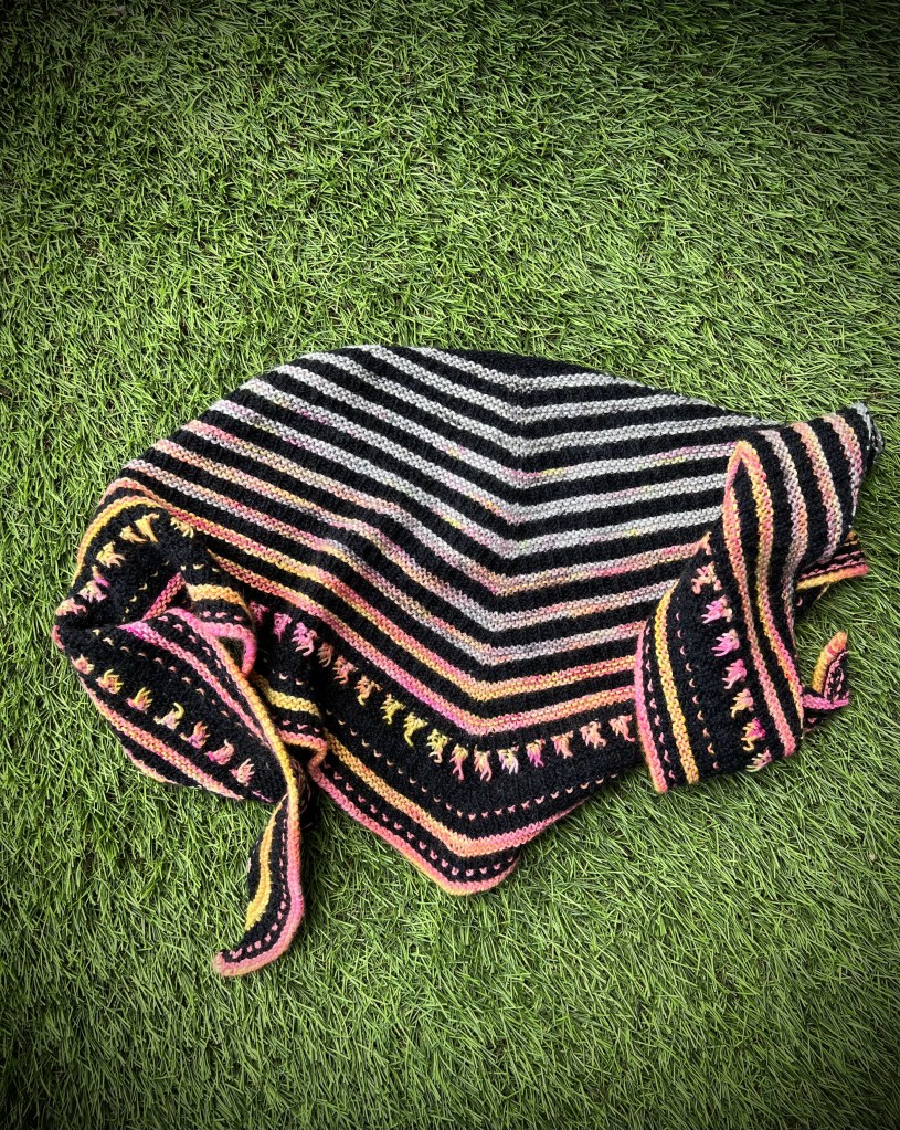 J’ai utilisé les restes de laines teintes à la main en base Cashemerino : Merinos Superwatch et Cachemire, de La Bien Aimée https://www.labienaimee.com utilisées pour le shawl Fuel My Fire.