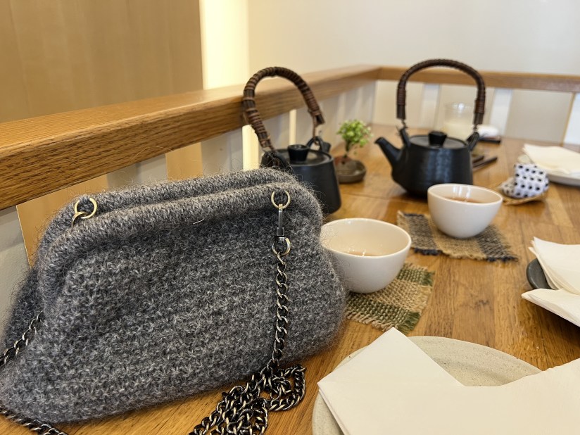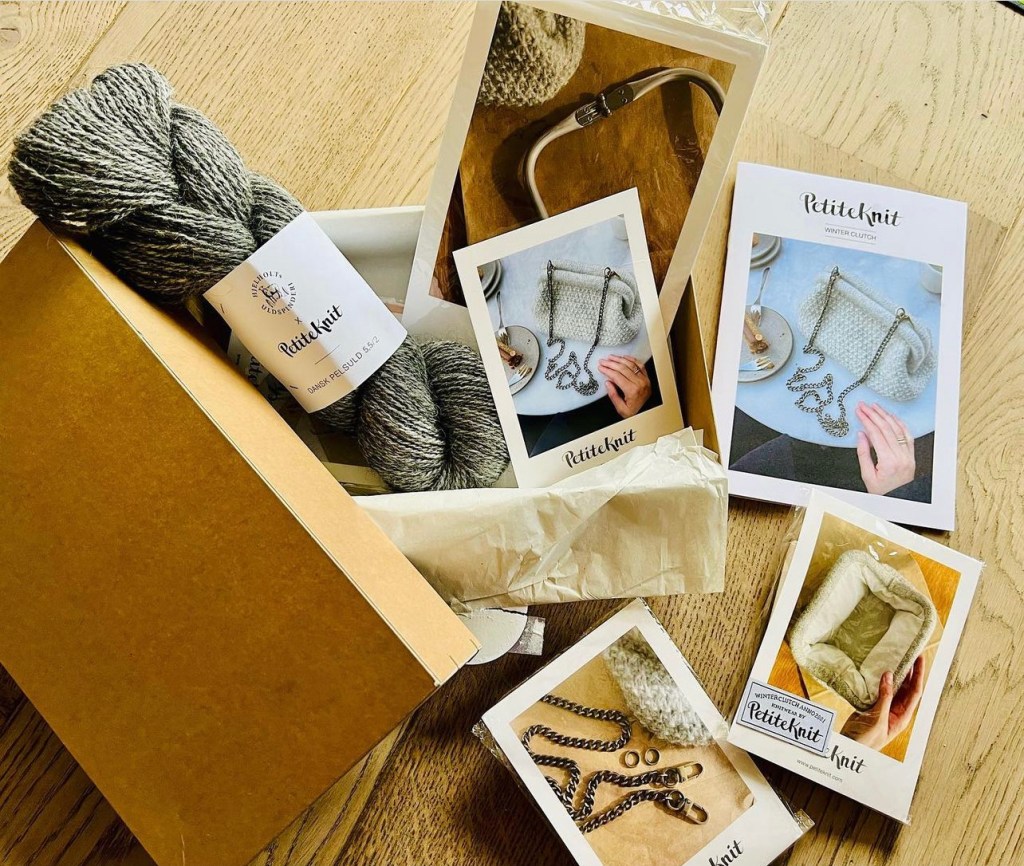Le patron est disponible ici : https://www.petiteknit.com/en/collections/accessoires/products/winter-clutch-8
